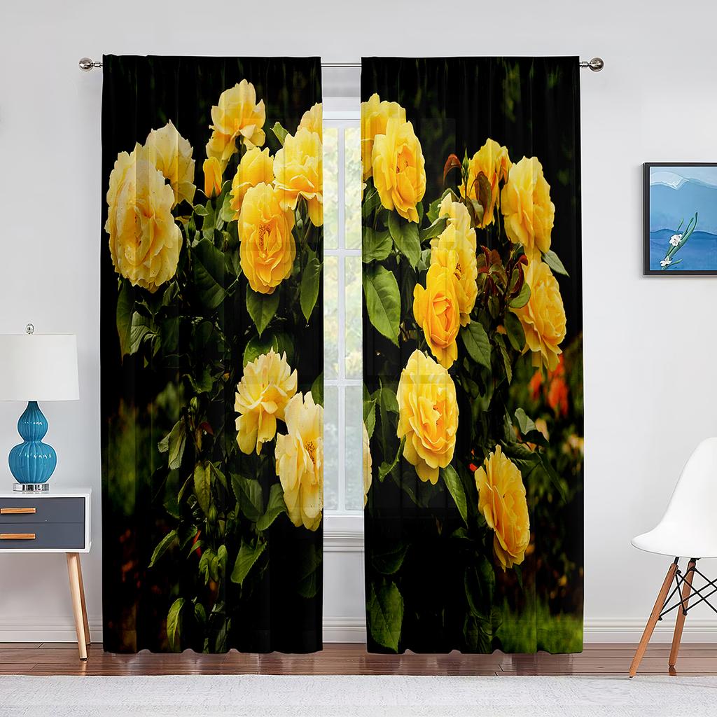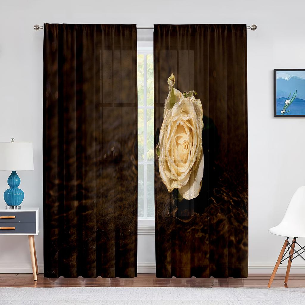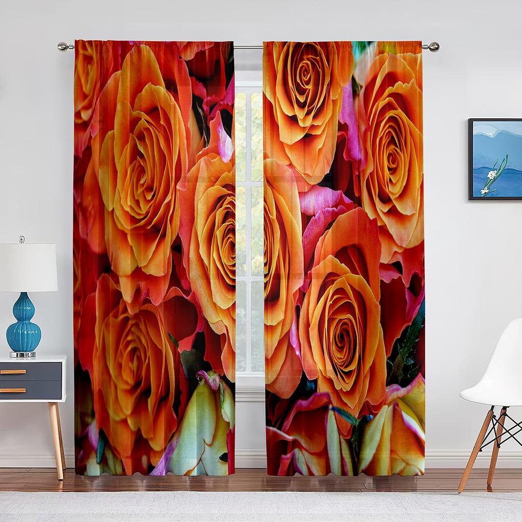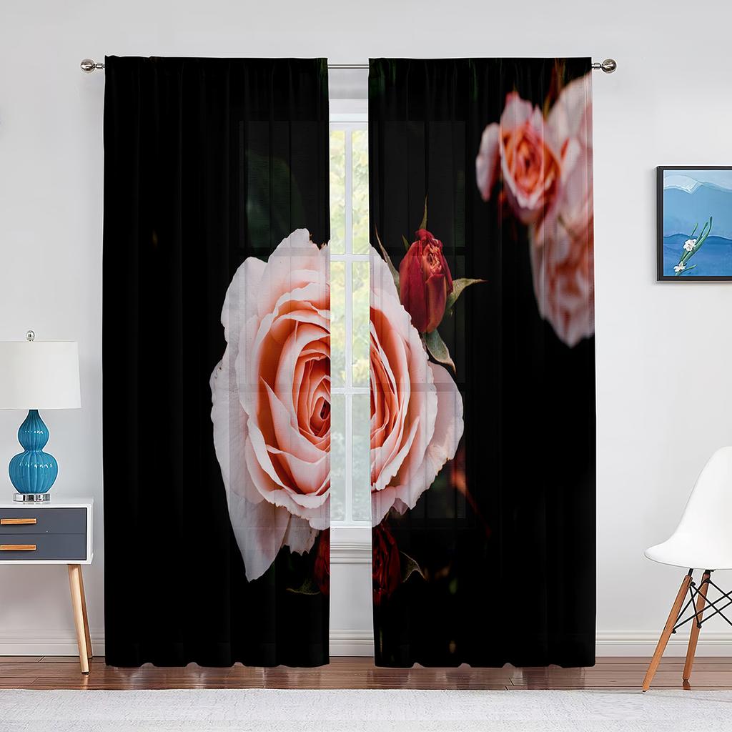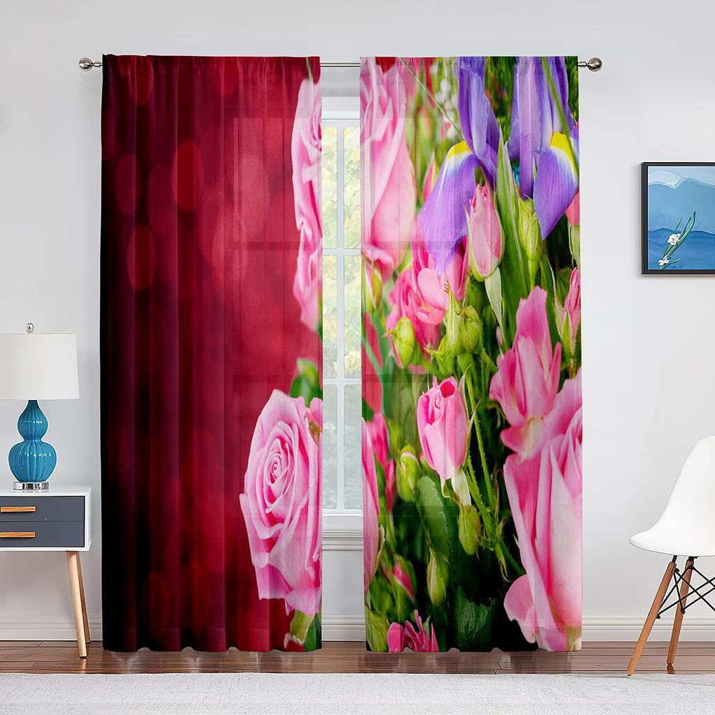 Прозрачные оконные шторы с цветущей красной розой для спальни, гостиной, ко дню Святого Валентина, романтические цветочные шифоновые тюлевые занавески из вуали