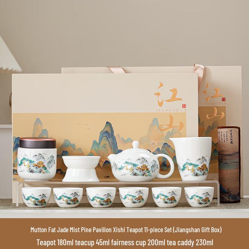 Xunyi Wisteria White Porcelain Tea Set (10-piece) with Xishi Pot — купить товар онлайн с бесплатной доставкой по всему миру!