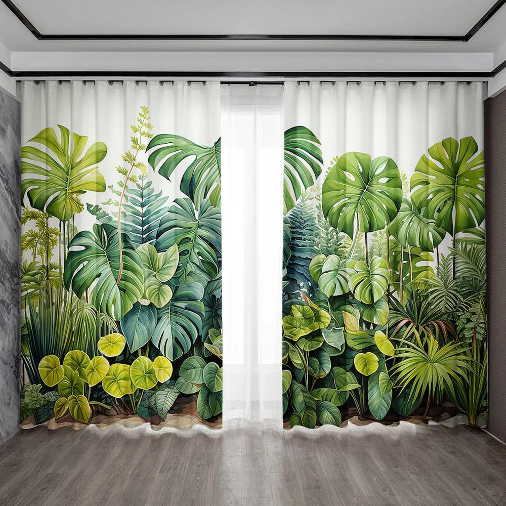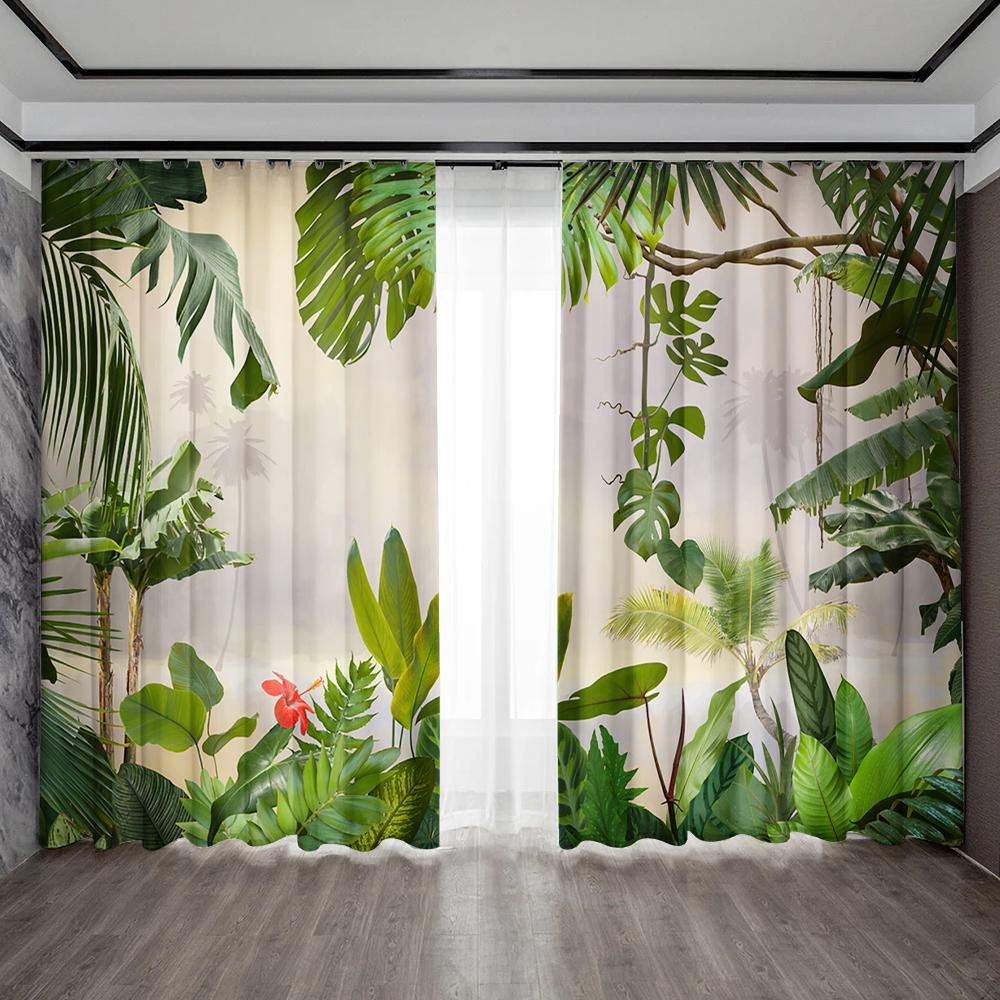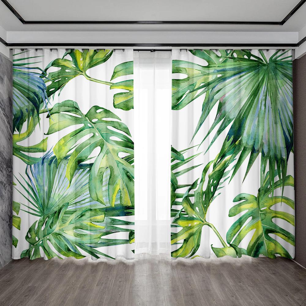 2 шт., марлевая занавеска для украшения дома, марлевая занавеска с тропическим листом, подходит для кухни, кафе, гостиной, балкона, сада