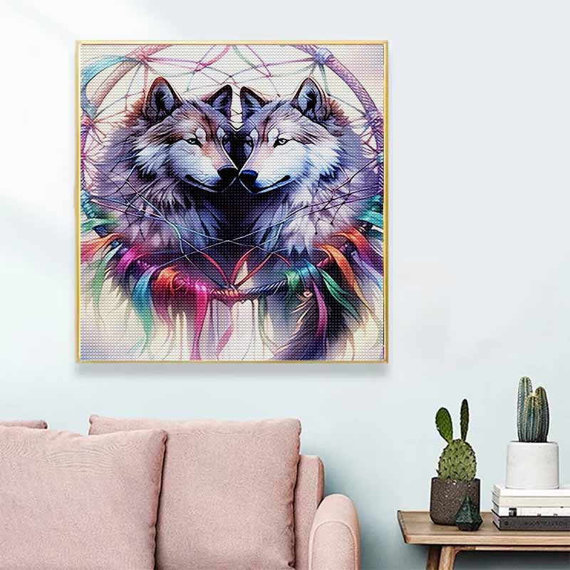 New Arrival 5D DIY Full Circle Diamond Painting "Two Wolves" Embroidery Cross Stitch Home Decor Gift
