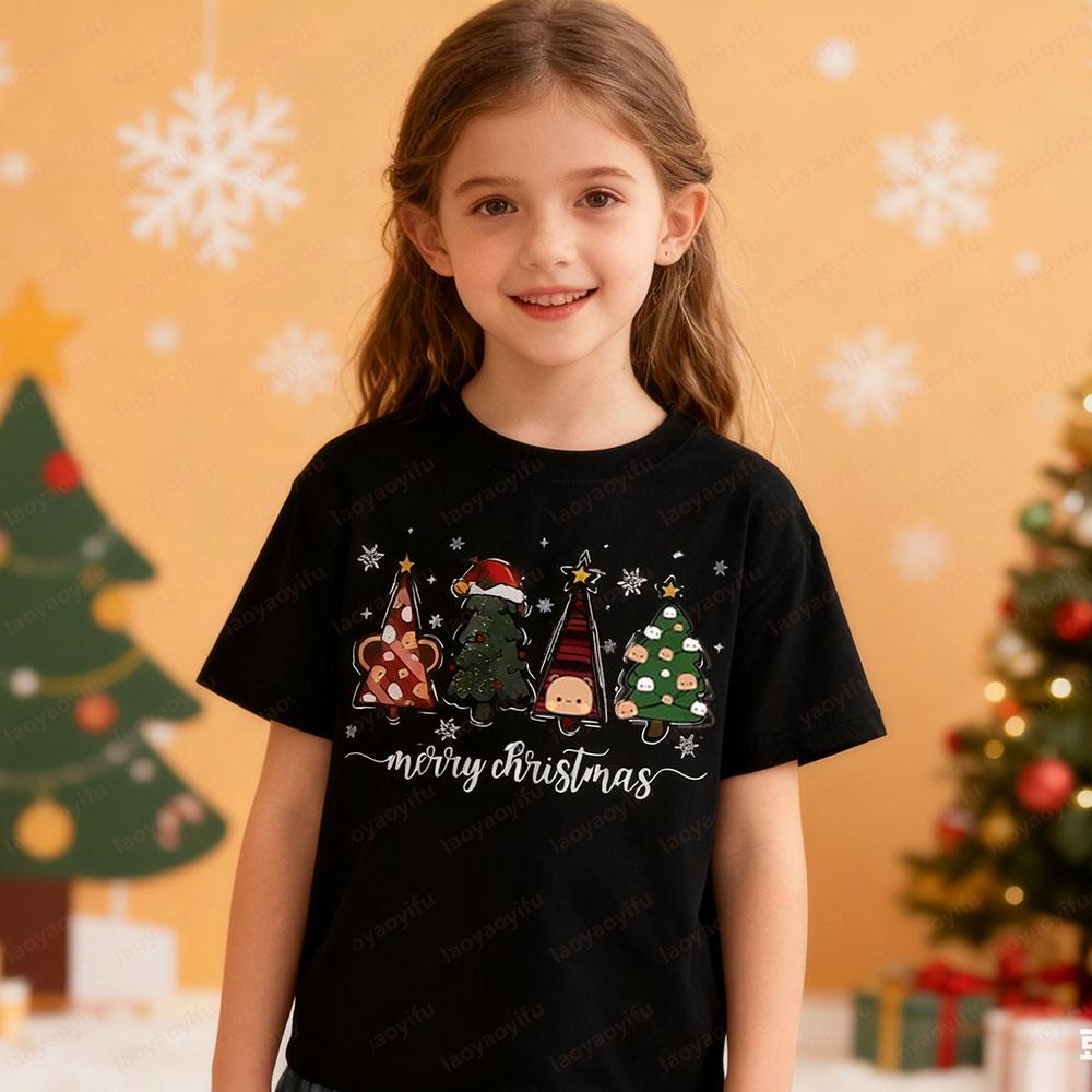 Fun Bubu Dudu Christmas Tree Children's Sports Shirt Kawaii Holiday Boys and Girls Casual T-shirt Cute Cartoon Printed Children's T-shirt