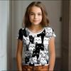 Girls' clothing summer cartoon cat pattern children's clothing children's art graffiti short sleeved T-shirt causal round neck children's top