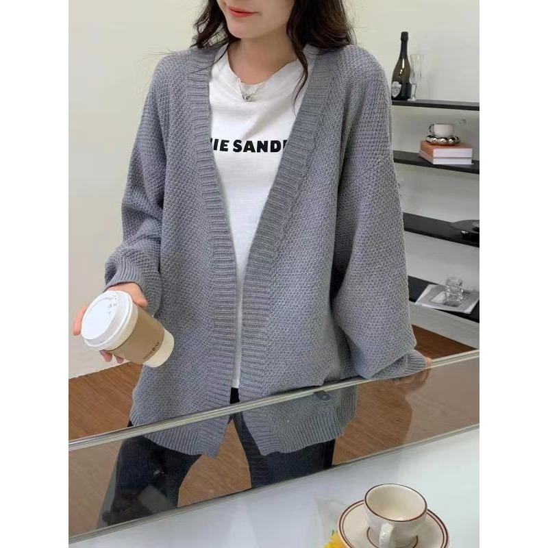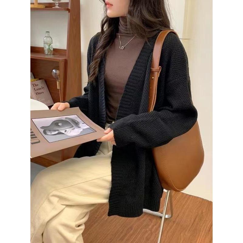 Куртка средней длины в стиле французского ретро, осенне-зимний, плотный трикотажный свободный свитер для поездок на работу, женский вязаный кардиган
