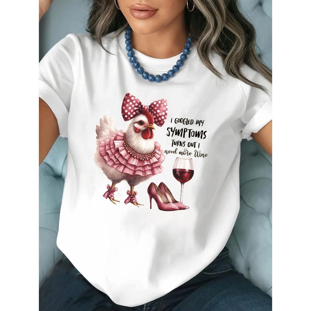 Women's T-shirt Short Sleeve I GOOGLED MY SYMPTOMS TURNS OUT I Need More Wine Letter Print Casual Top For Summer & Spring