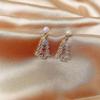 Christmas tree earrings with red beads and gold-plated pom-poms