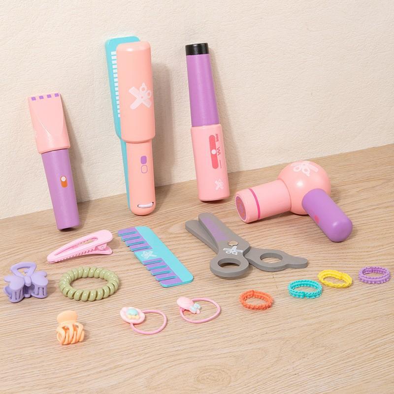 Kids Wooden Makeup Simulation Dressing Up Makeup Playing House Character Dress Up Toy Barber Bag Log Solid Wood Toy