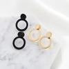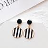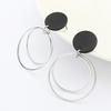 Asymmetric Black White Circle Drop Earrings - Geometric Hollow Statement
