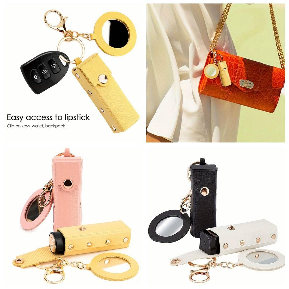 Коробка для хранения помады Мини-косметичка с зеркалом Брелок Портативная сумка для помады для девочек