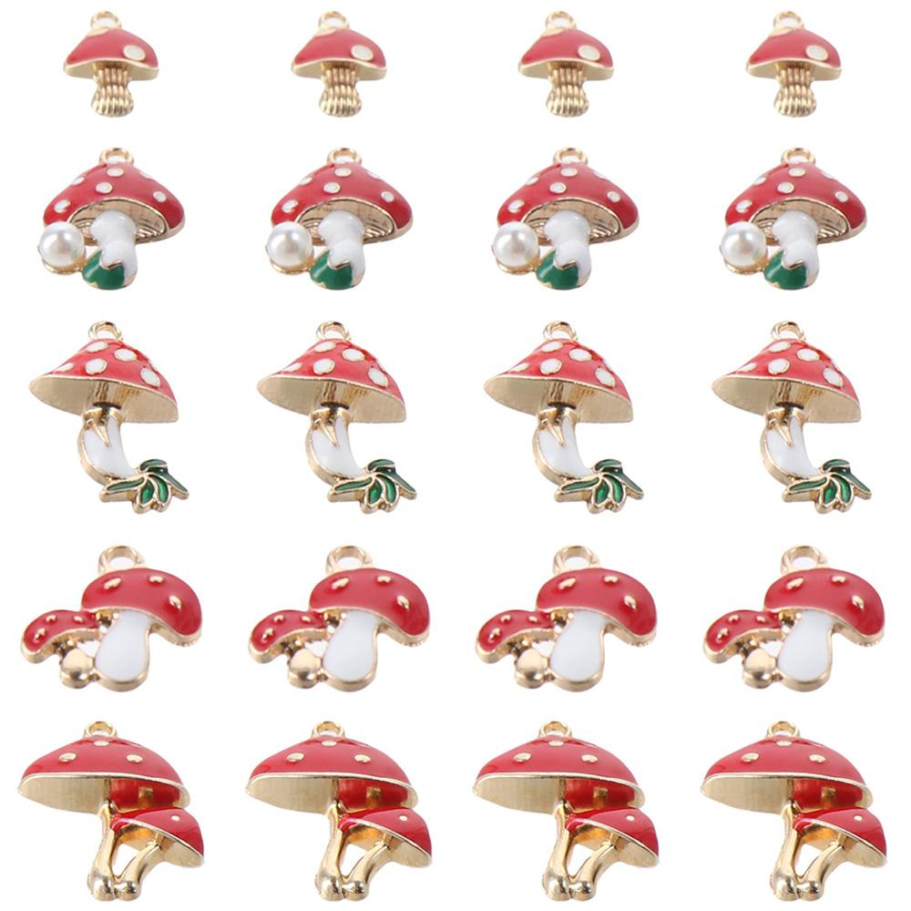 20pcs Alloy Enamel 5 Shapes Red Mushroom DIY Jewelry Crafts Making Women