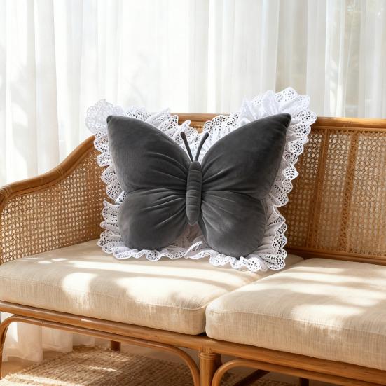 Эта декоративная подушка стандартного размера имеет элегантный 3D-дизайн с бабочками и нежную кружевную отделку, добавляющую нотку изысканного гламура любому пространству.. Его мягкая текстура и рельефный мотив бабочки создают глубину и визуальный интерес, делая его выдающимся акцентным элементом..