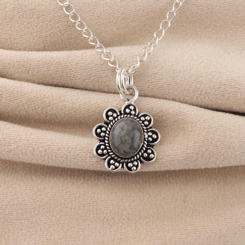 Натуральный Моховой Агат Драгоценный Камень 925 Стерлинговое Серебро Ювелирное Изделие Женский Кулон 1.37'' В Подарок CP-40-31