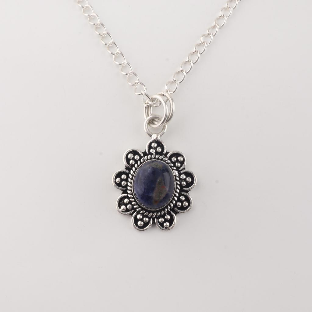 Натуральный камень содалит, серебро 925 пробы, дизайнерская женская подвеска 1,37", подарок для нее CP-40-32