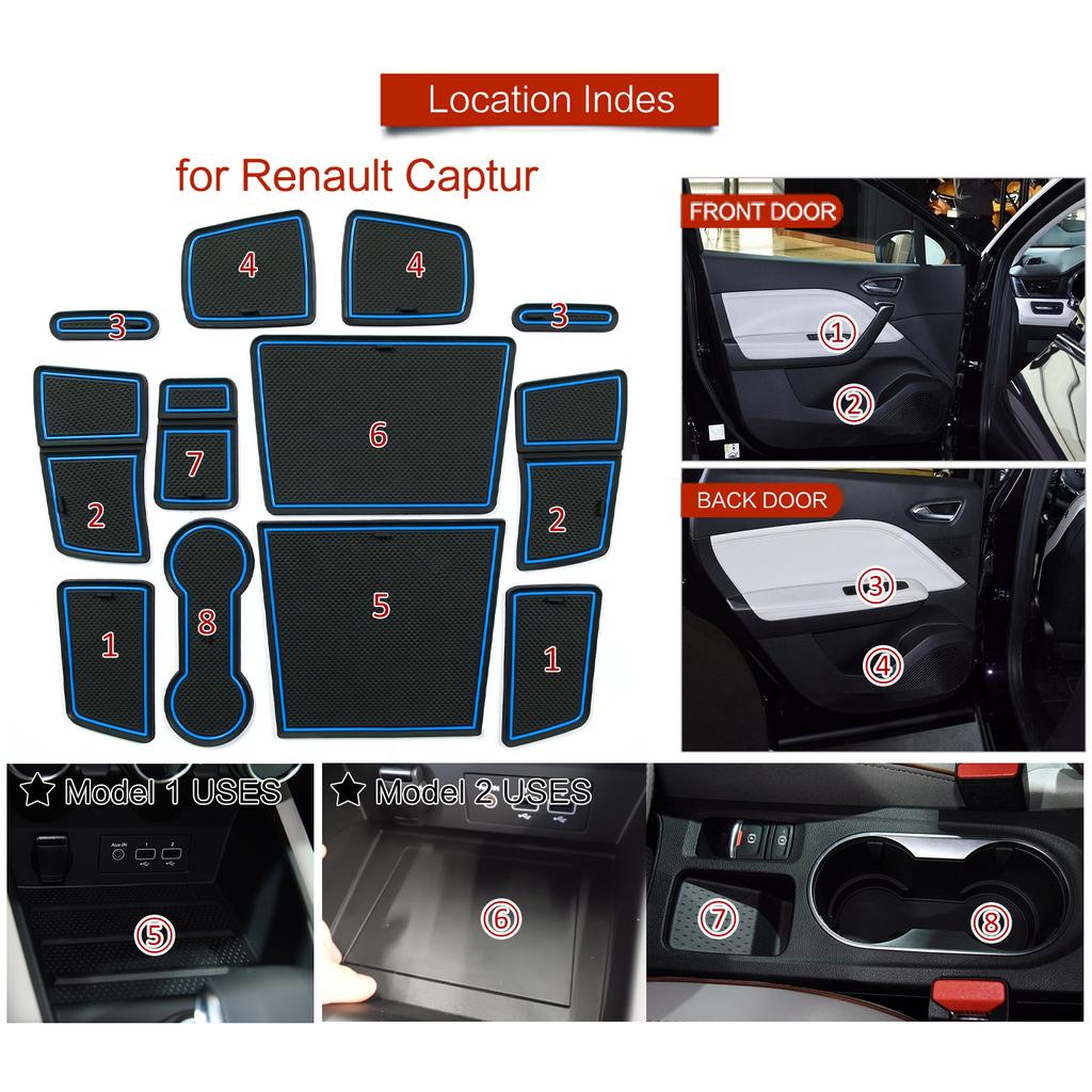 Противоскользящий коврик в слот для ворот и подстаканник для Renault Captur 2 (Только электрический парковочный тормоз ) 2019-2023 Нескользящие накладки в пазы дверей Аксессуары