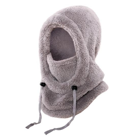Универсальный дизайн 3-в-1 функционирует как шапка, ветрозащитный шарф или балаклава с регулируемыми черными вязаными шнурками для настраиваемого покрытия..
