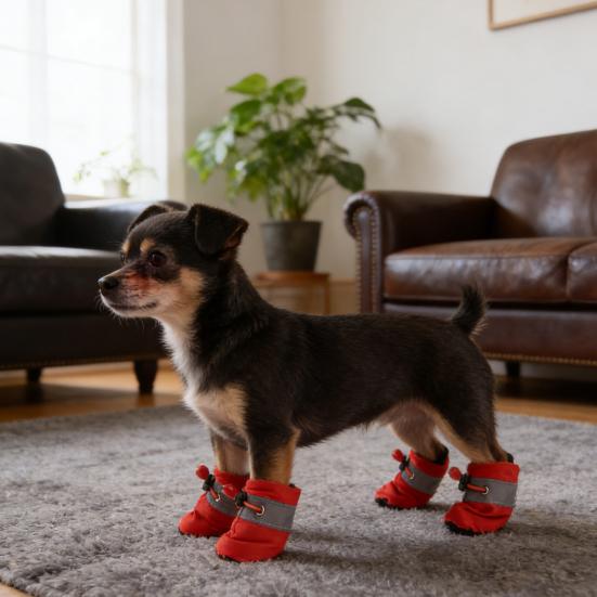 Набор из четырех штук для полной защиты лап: Этот продукт, разработанный как полный набор из четырех ботинок, полностью закрывает все лапы маленьких собак или кошек.. Идеально подходит для приключений на открытом воздухе или путешествий по снегу, обеспечивает всестороннюю защиту от пересеченной местности, холодной земли и мусора.