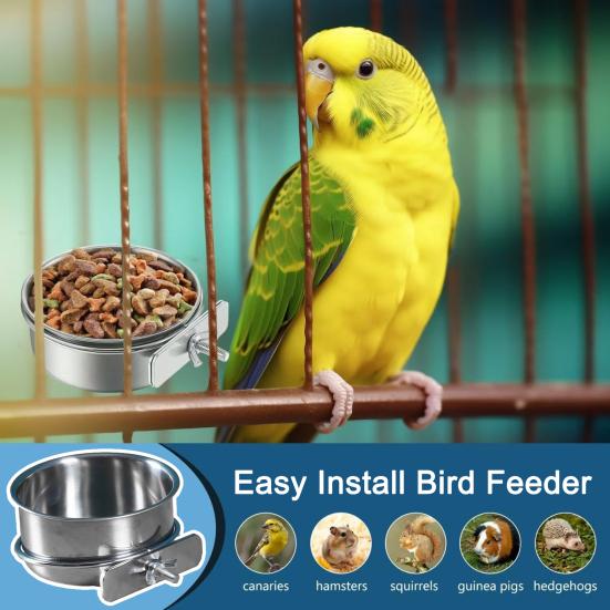 Secure Clamp Design & Easy Installation: Equipped with a sturdy bracket and detachable stainless steel bowl, the clamp attaches firmly to any birdcage side—effortless to place, remove, or reposition without slipping.