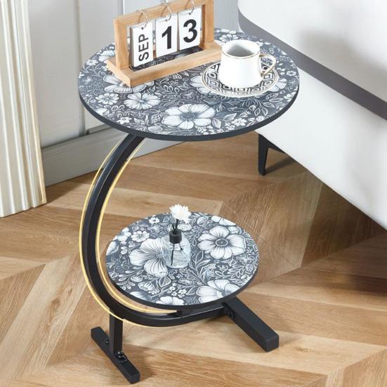 Элегантный дизайн с цветочным узором: Этот приставной столик с изысканным цветочным узором на столешнице добавляет нотку изысканности и очарования любой обстановке.. Его универсальный стиль дополняет различные темы декора — от современного до деревенского — что делает его подходящим как для гостиных, так и для балконов или спален.