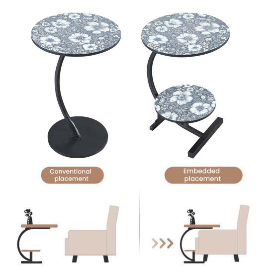 Компактный и функциональный размер: Этот приставной столик C-образной формы имеет компактный дизайн с размерами, идеально подходящими для небольших помещений.. Его тонкий профиль плотно прилегает к диванам, кроватям или креслам, обеспечивая удобную поверхность без загромождения вашей комнаты.. Идеально подходит для квартир или уютных уголков, он предлагает практичную функциональность, занимая минимум места.