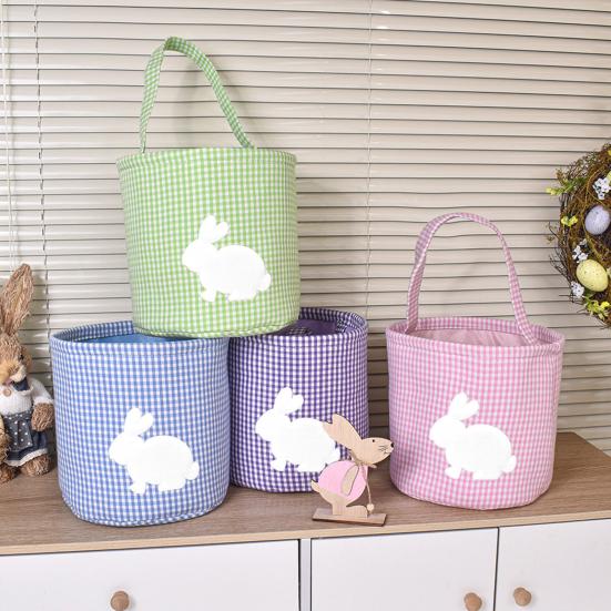Пасхальная корзина с пасхальным кроликом, клетчатая, гинем, пасхальное ведро с ручкой, милая для охоты за яйцами