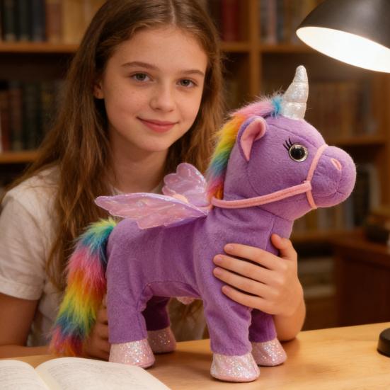 Интерактивная функция ходьбы и пения: Оснащенная электрическим механизмом, эта плюшевая игрушка-лошадь ходит и поет, обеспечивая увлекательное развлечение для детей и взрослых.. Оживленное движение в сочетании с веселыми звуками обогащает игровой процесс и добавляет динамичной привлекательности любой комнате.