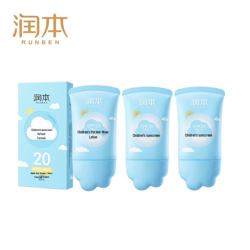Protect your child's delicate skin with the Runben Kids SPF20 Sunscreen 3-Pack. This set includes three 50ml tubes of refreshing and moisturizing lotion, providing effective UV protection. Featuring a light scent, it's perfect for boys and girls during outdoor activities.
