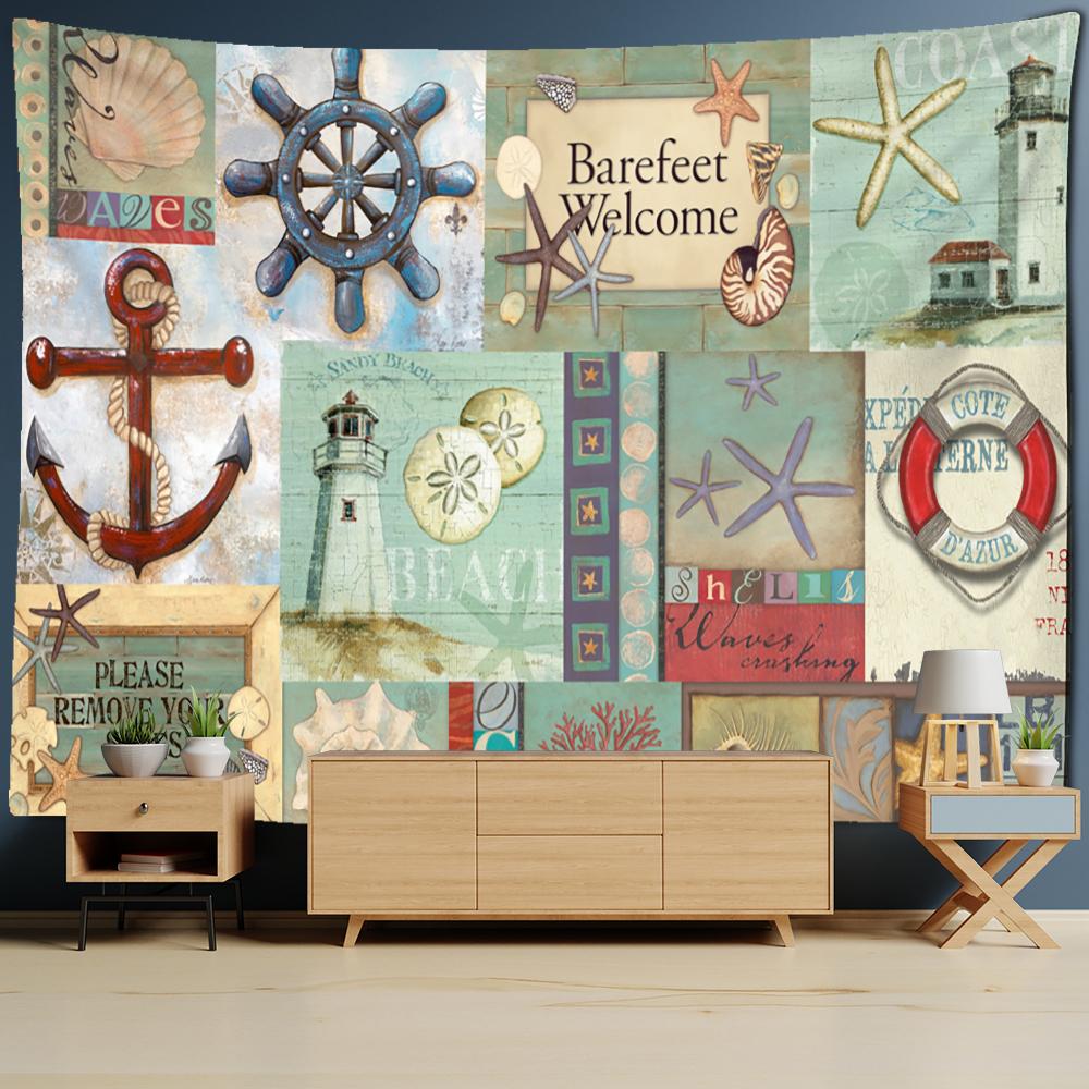 Морской фон мультфильм штамп гобелен настенный ретро каваи хиппи тапиз психоделический детская комната домашний декор