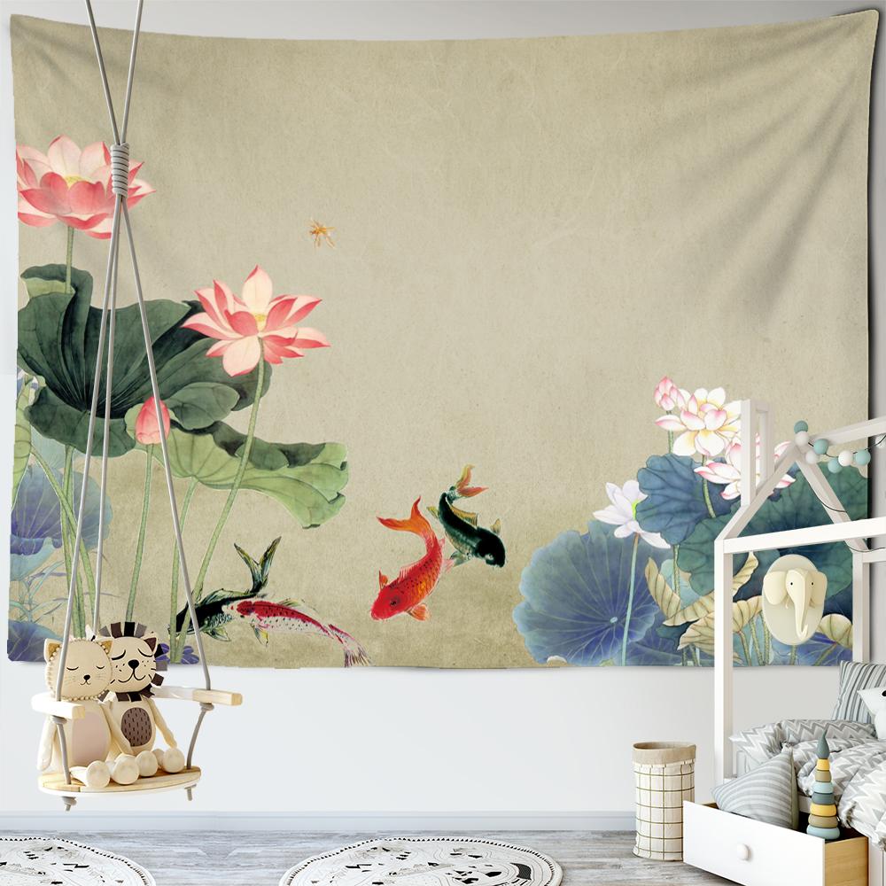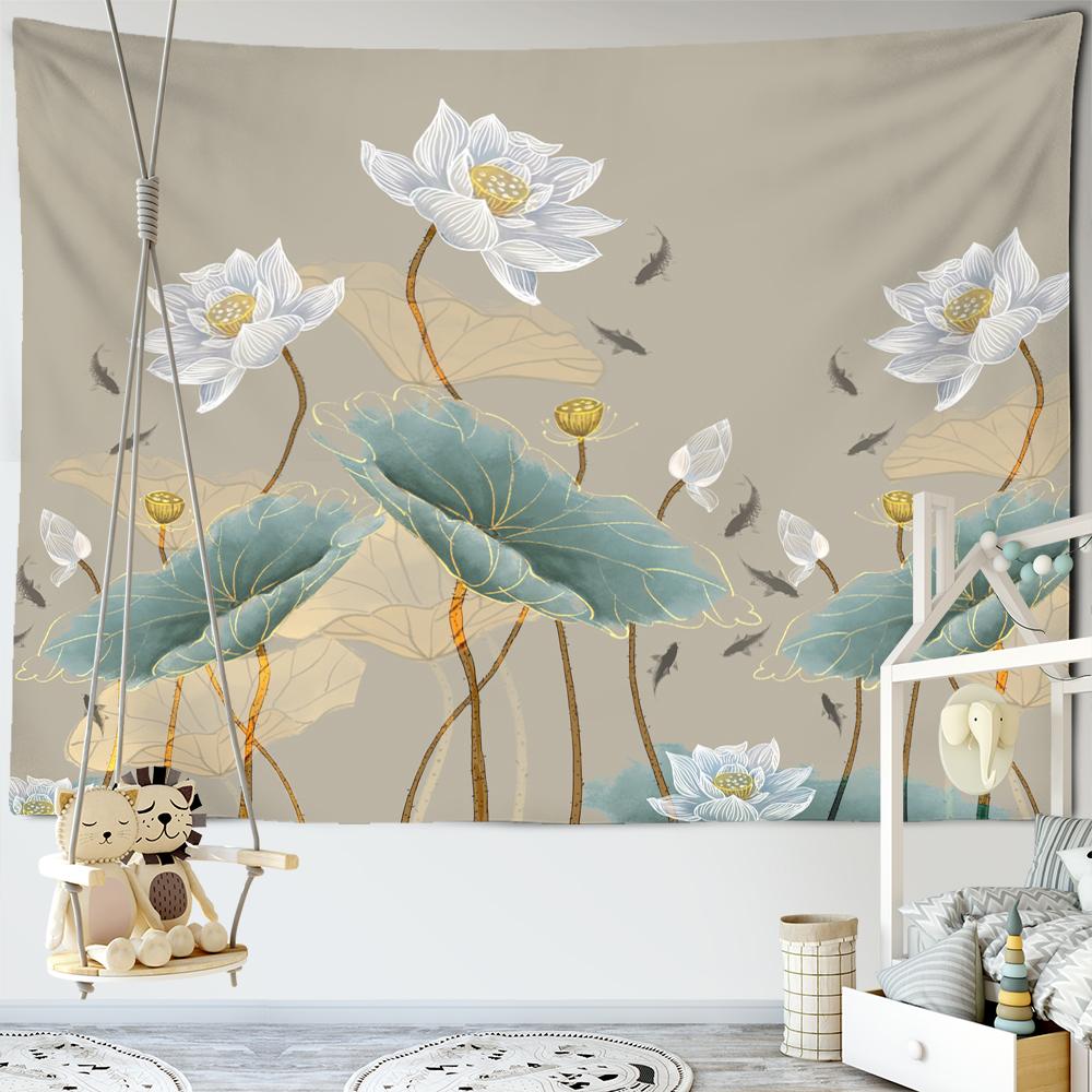 Фон с изображением рыбы лотоса, настенная роспись, гобелен, настенный гобелен в богемном стиле, психоделическое искусство, минималистский эстетический настенный декор для комнаты