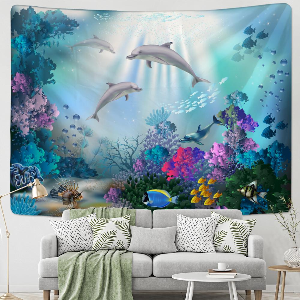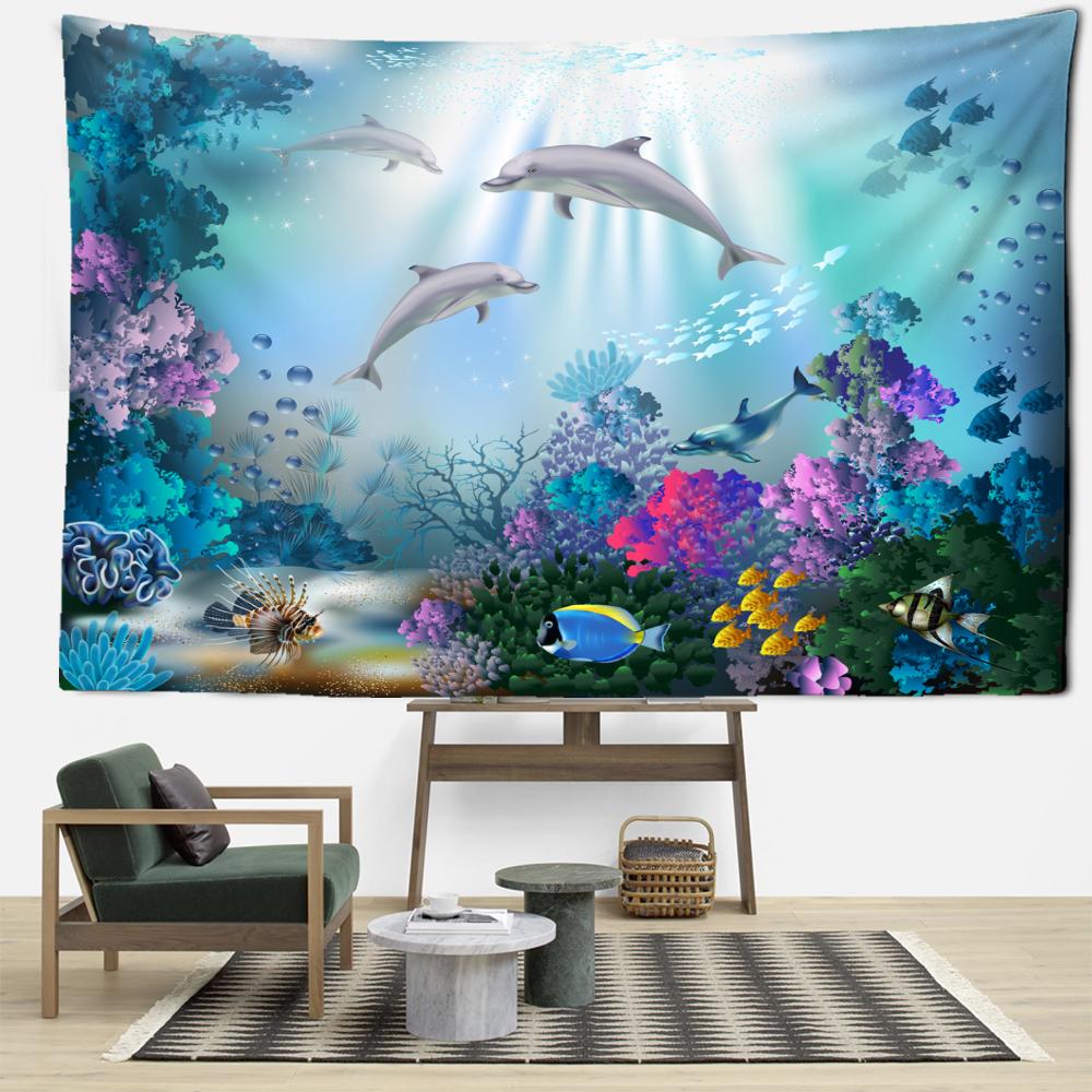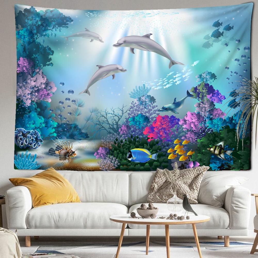 Рыба мечты подводный пейзаж гобелен настенный богемный абстрактный кавайный простой хиппи спальня гостиная домашний декор