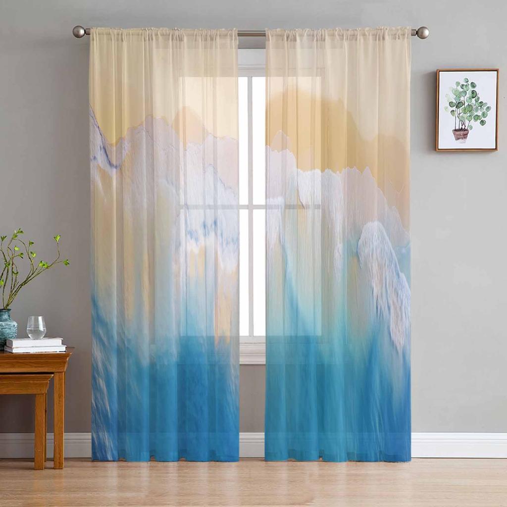 Океанский пляж, летние каникулы, тюлевые оконные шторы для спальни, роскошный домашний декор, шторы в гостиной, шифоновые панели