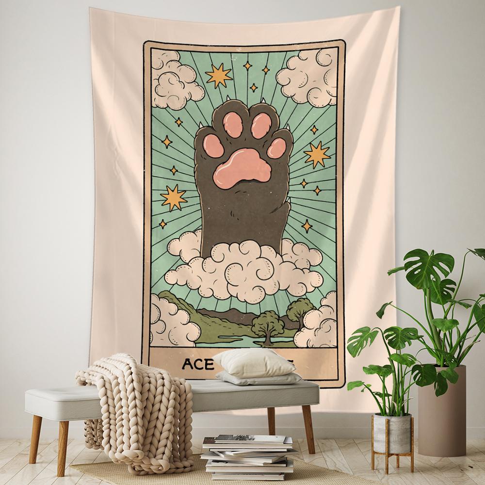 Таро кошачьи лапы гобелен настенный психоделический богемный стиль домашний хиппи колдовство декор общежития для девочек