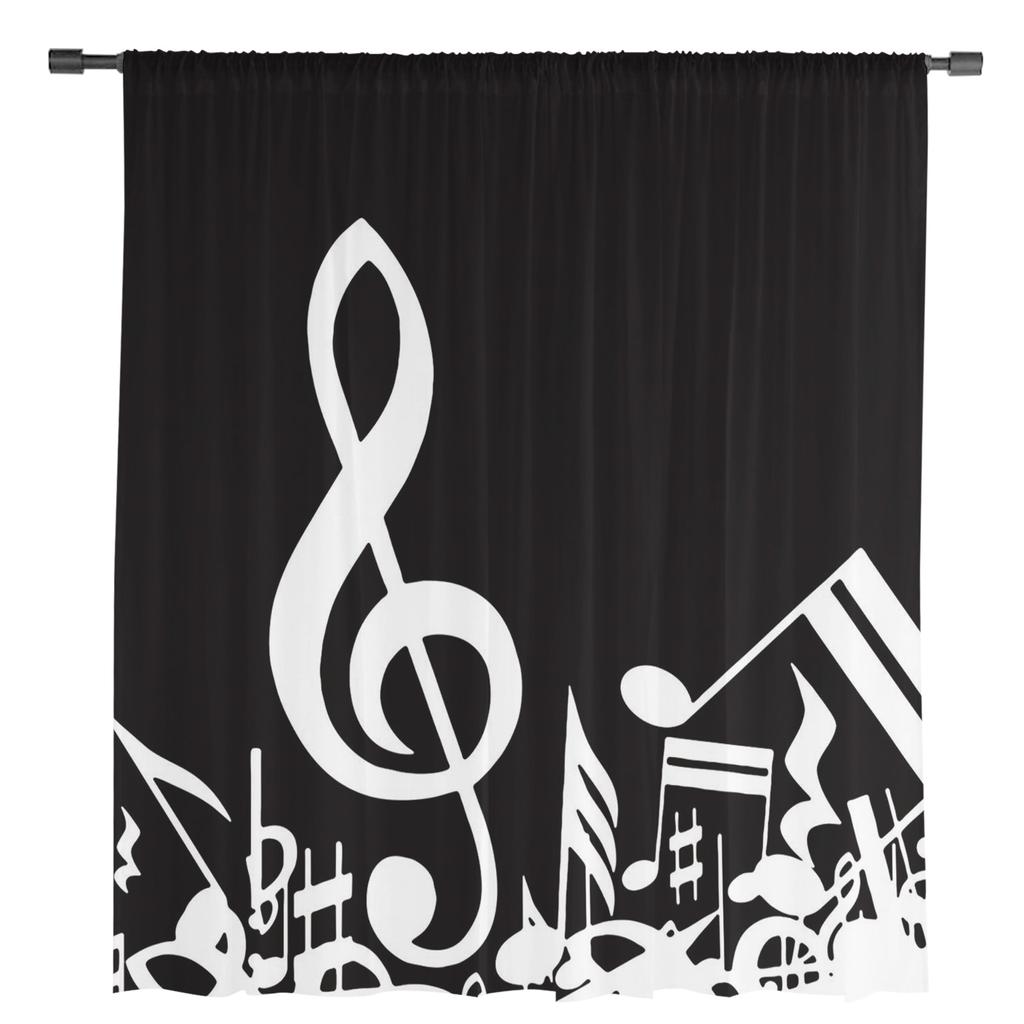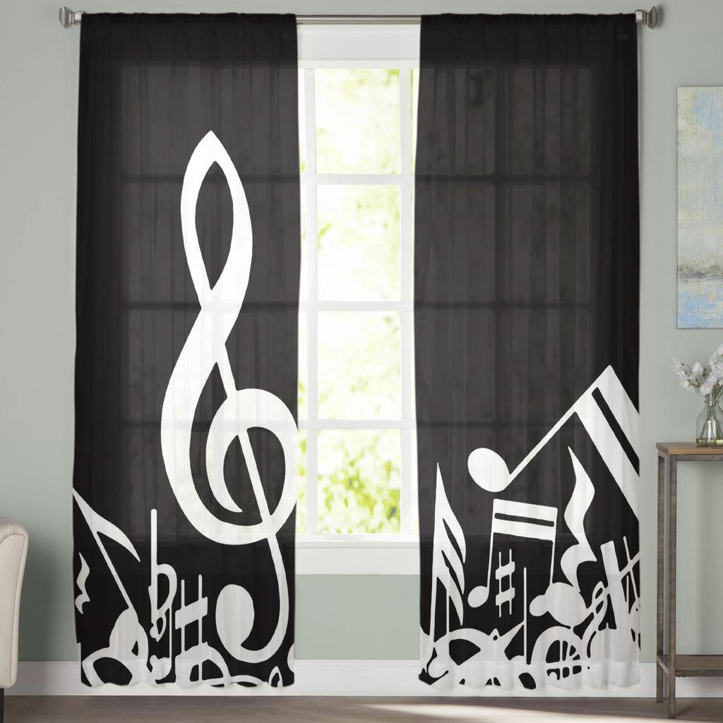 Музыкальная нота, черно-белые прозрачные шторы для гостиной, вуаль, занавеска для спальни, ванной комнаты, тюлевые шторы, оконные шторы