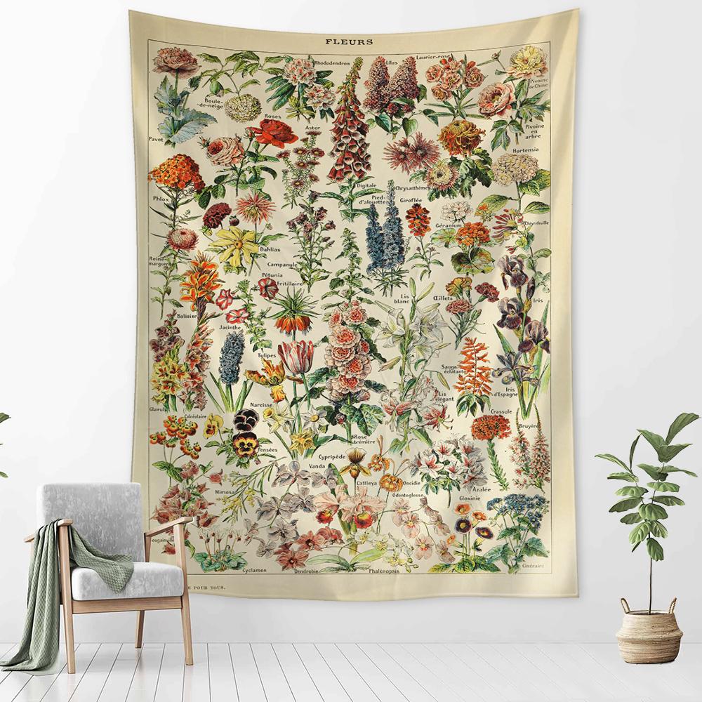 Идентификационная схема цветов и растений, гобелен, настенный подвесной Ретро, абстрактное, минималистское искусство, богемная эстетика, домашний декор для комнаты