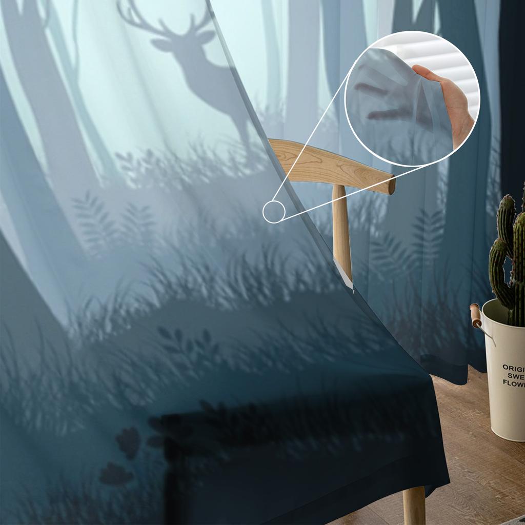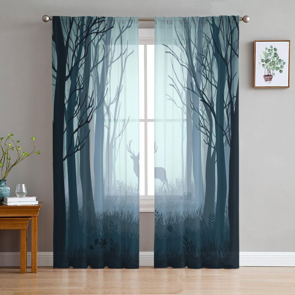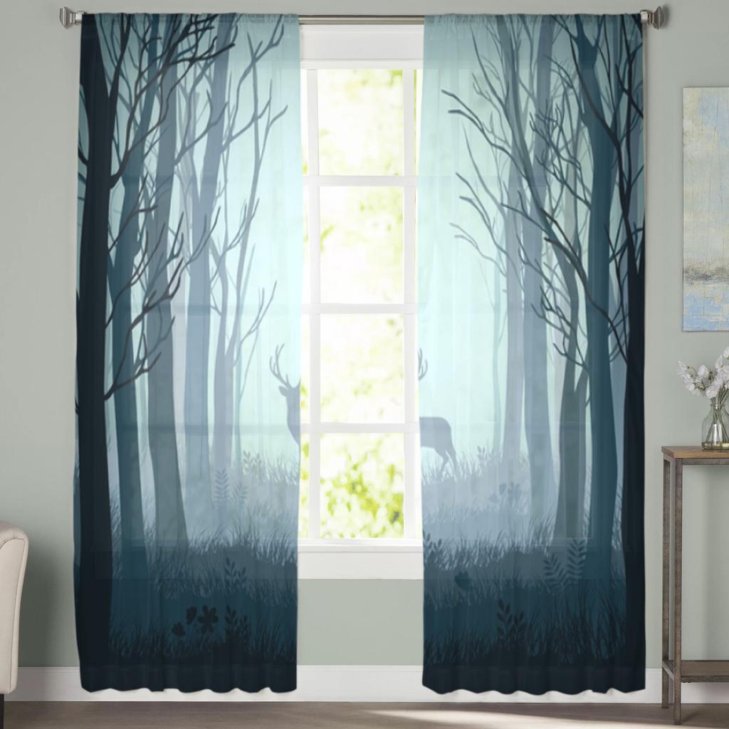 Олень в осеннем туманном лесу Прозрачные шторы для гостиной Прозрачный тюль Оконная занавеска Спальня Кухня Декор Вуаль Шторы