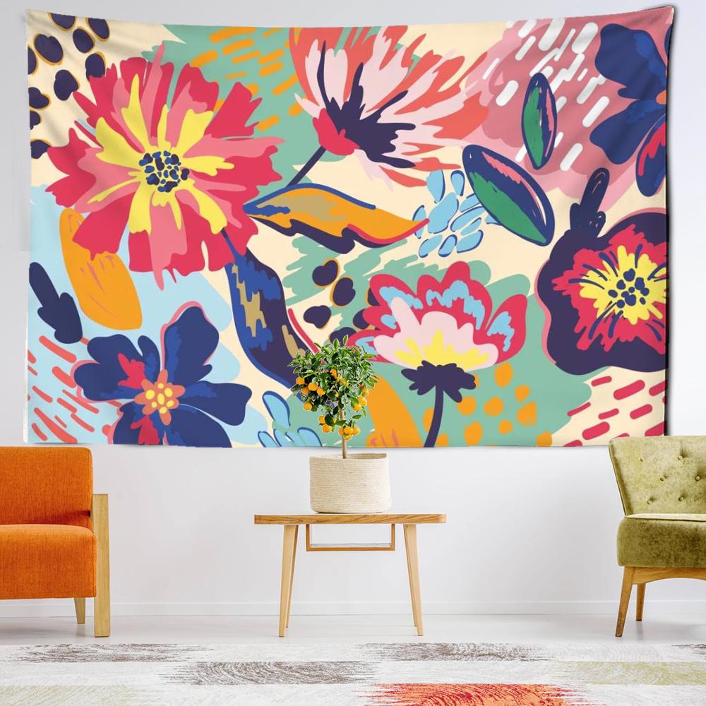 Мультяшное искусство Цветочный гобелен Настенный гобелен Хиппи Тапиз Растение Простота Кавайи Эстетика Комната Домашний Декор