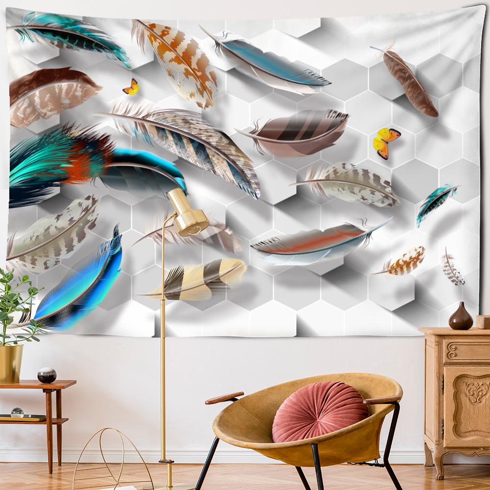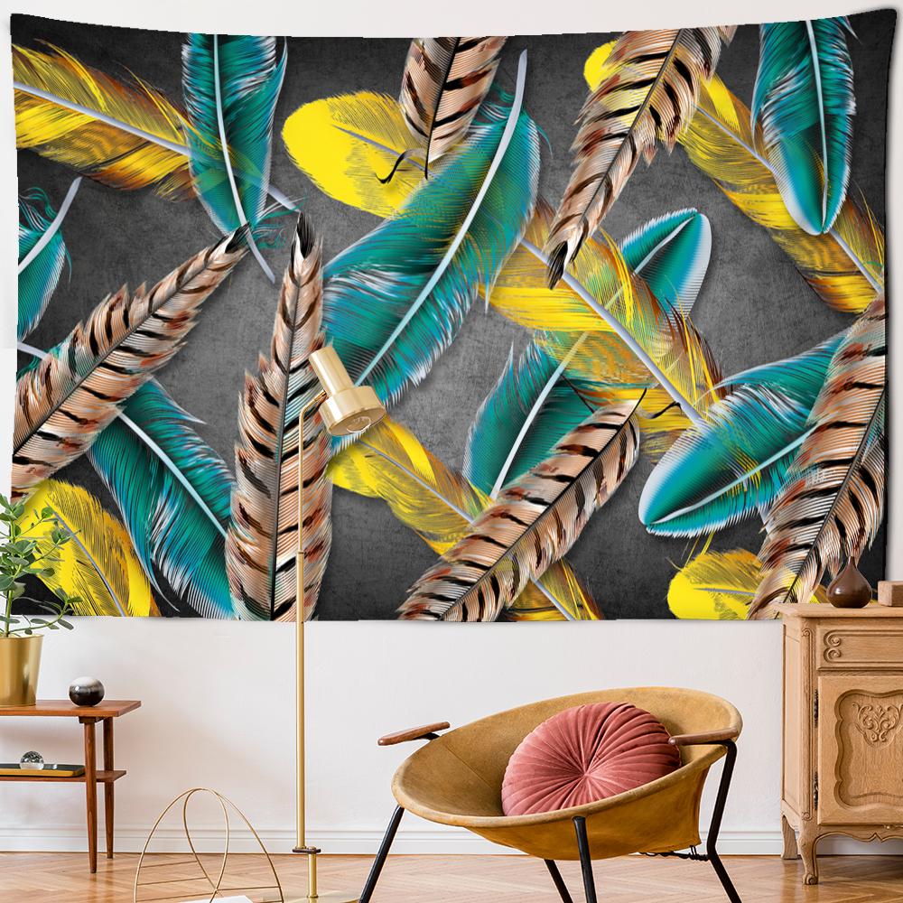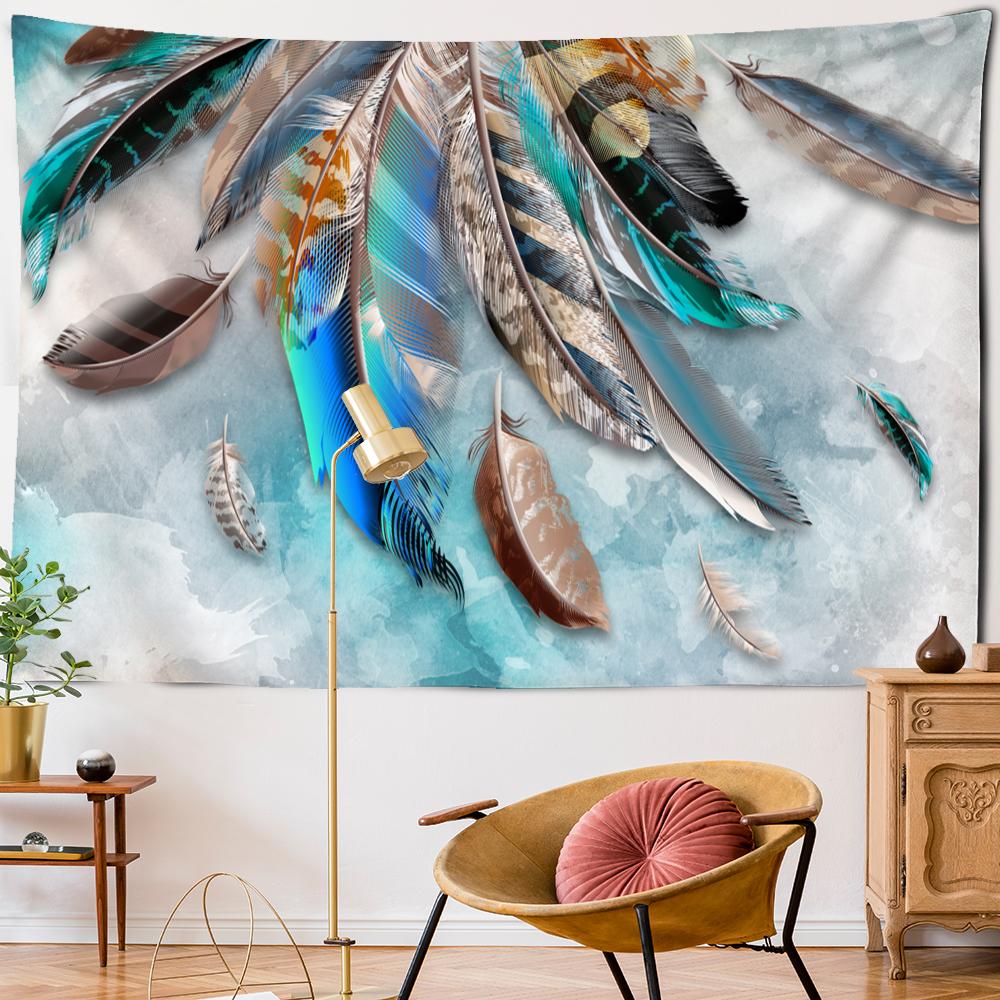 Психоделический гобелен с перьями, настенный художественный богемный стиль, тапиз, хиппи, красочный, загадочный, для спальни, домашнего декора