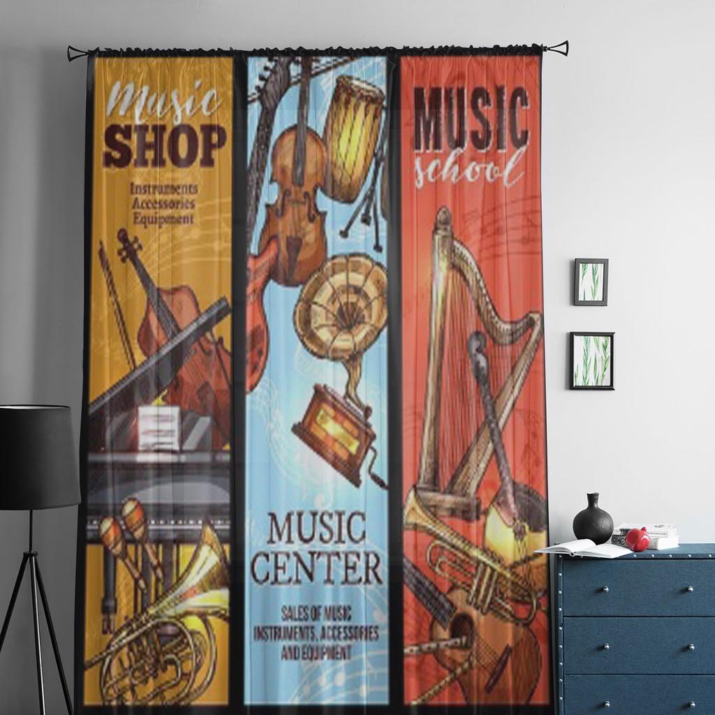 Тюлевые прозрачные оконные шторы с музыкальными инструментами для гостиной, спальни, современная шифоновая вуаль, занавески из органзы, декор, шторы