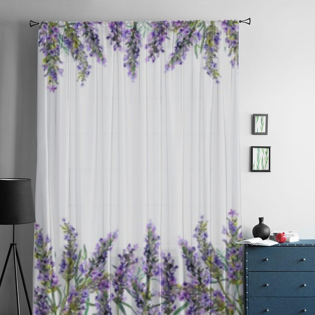 Акварельные цветы лаванды прозрачные шторы для гостиной прозрачный тюль занавеска для окна спальня кухня декор вуаль шторы