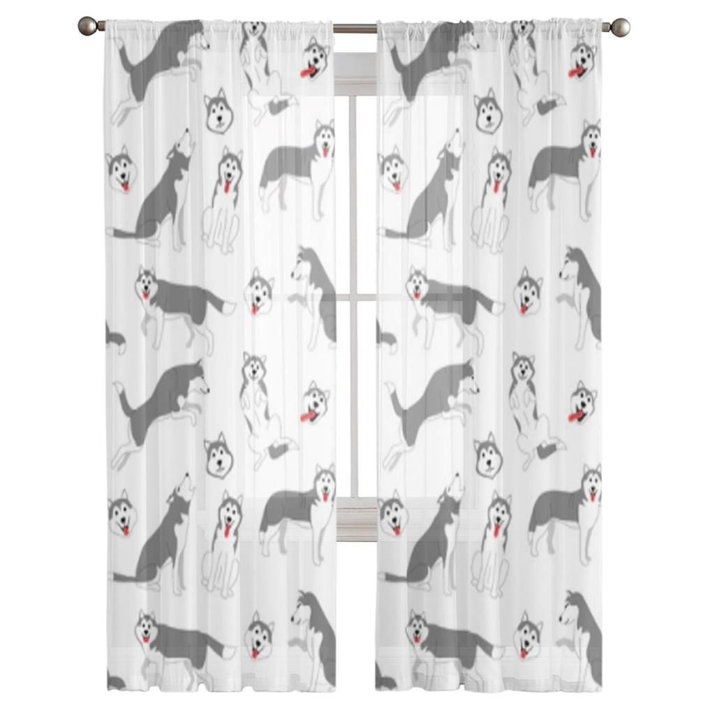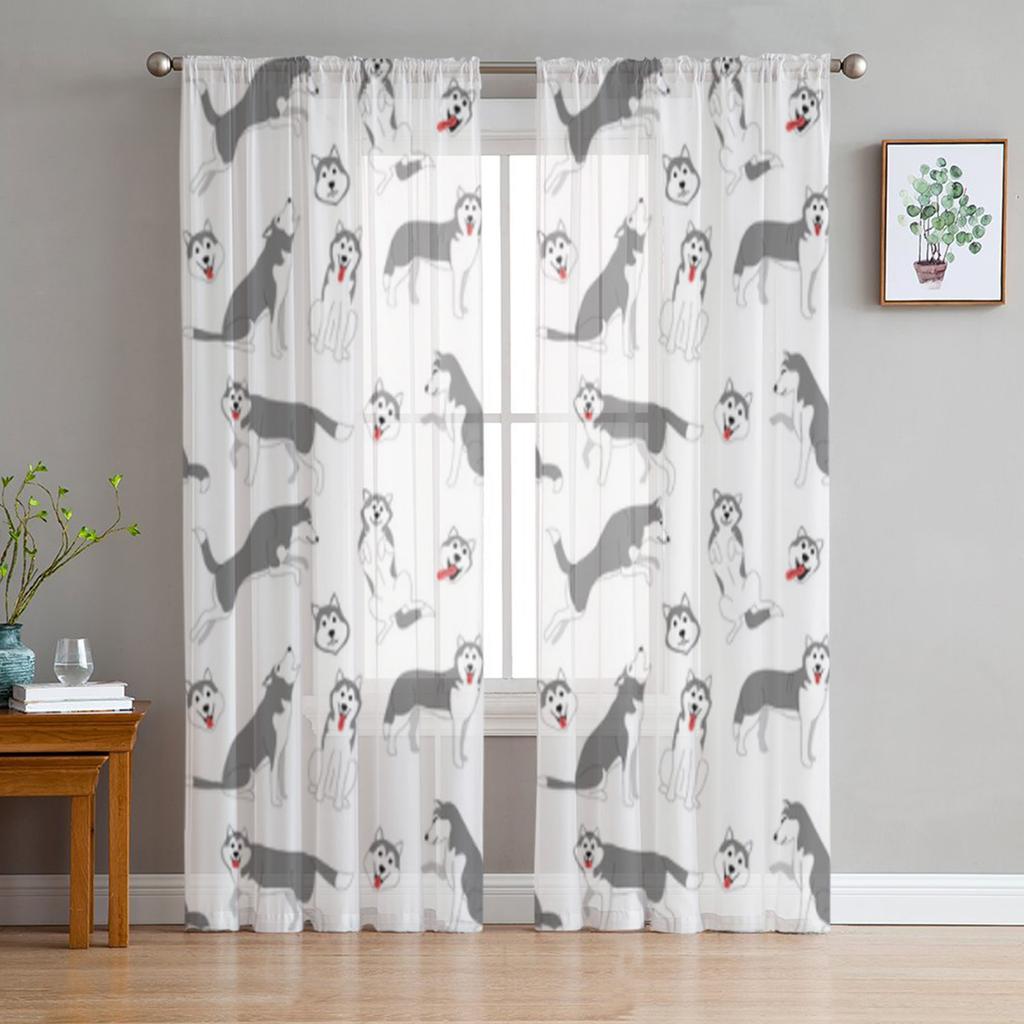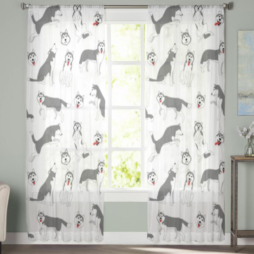 Сибирский хаски, позы собаки, прозрачные шторы для гостиной, прозрачная тюль, оконная занавеска, занавеска для спальни, кухни, вуаль, шторы
