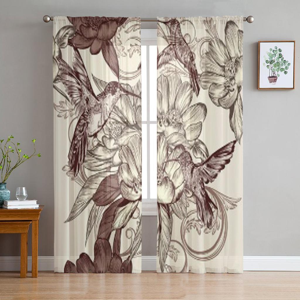 Птицы Цветы Прозрачные шторы для гостиной Прозрачный тюль Оформление окон Спальня Кухня Домашний декор Вуаль Драпировки