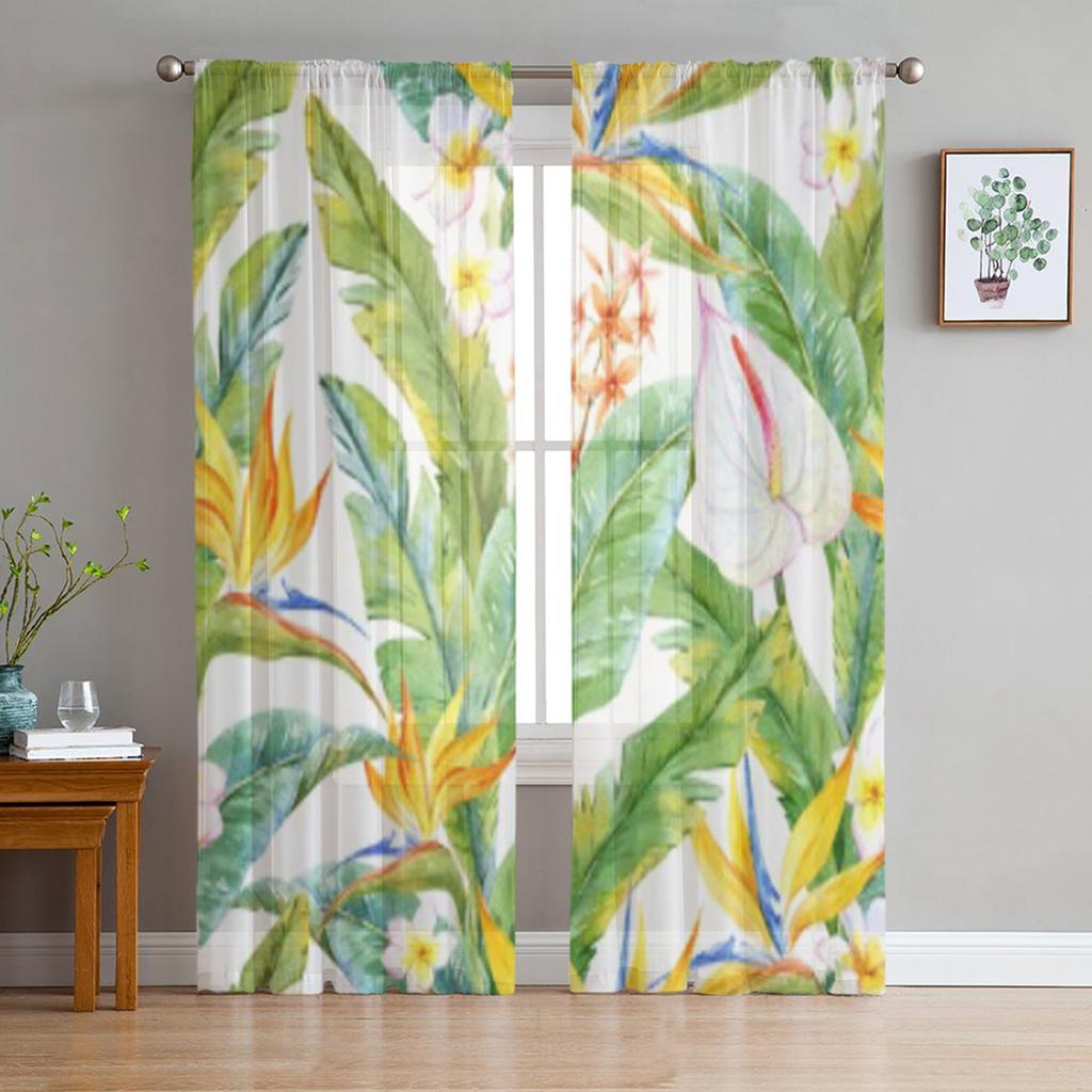 Акварельные тюлевые прозрачные шторы с цветами плюмерии для гостиной, спальни, кухни, украшения, вуаль, шторы из органзы