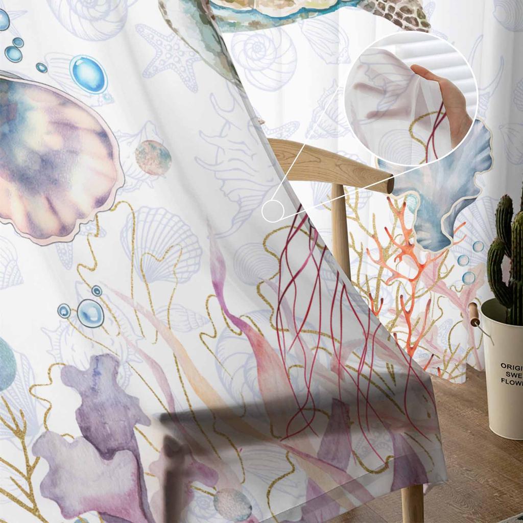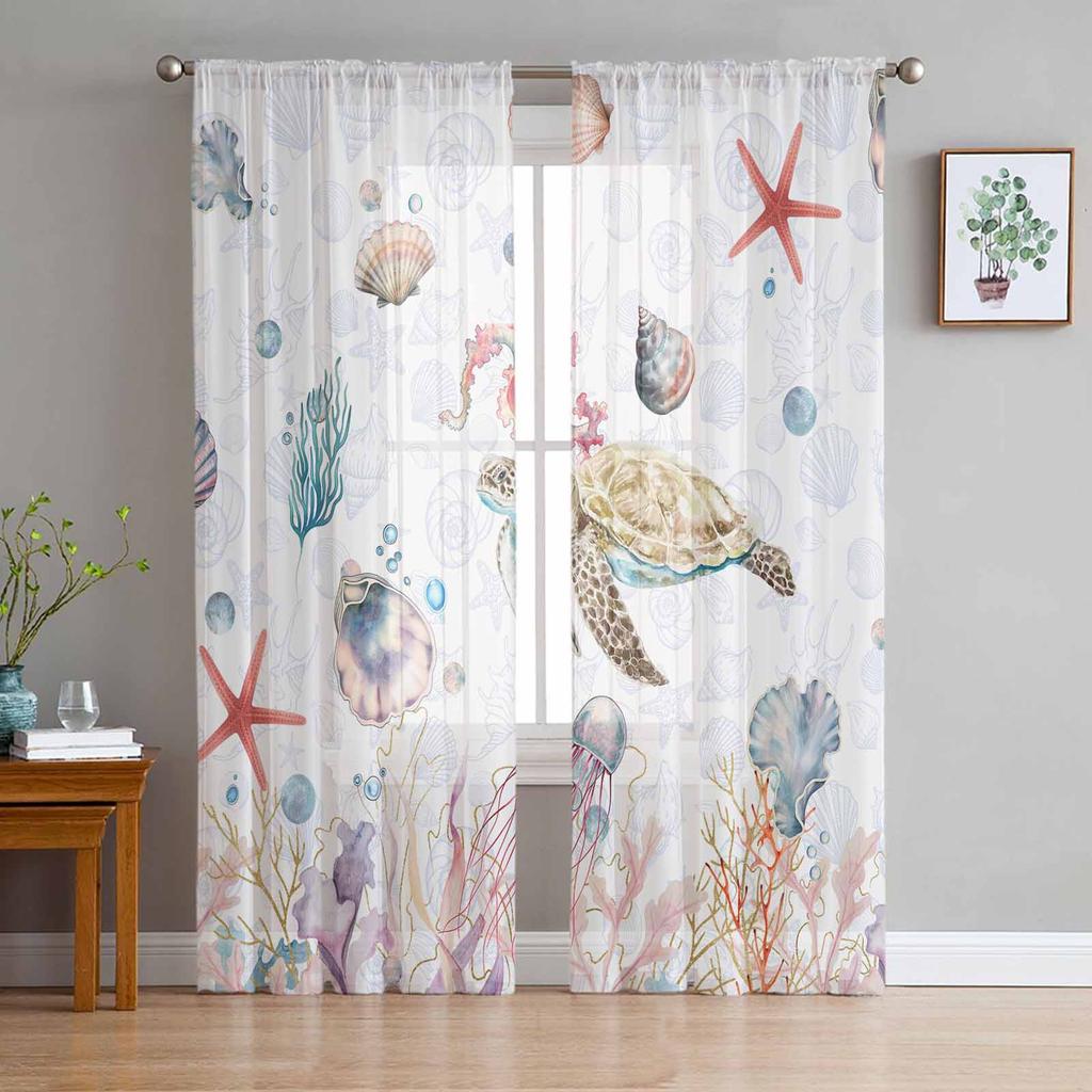 Летние акварельные морские тюль-шторы для окон гостиной спальни отеля роскошные украшения прозрачные шторы