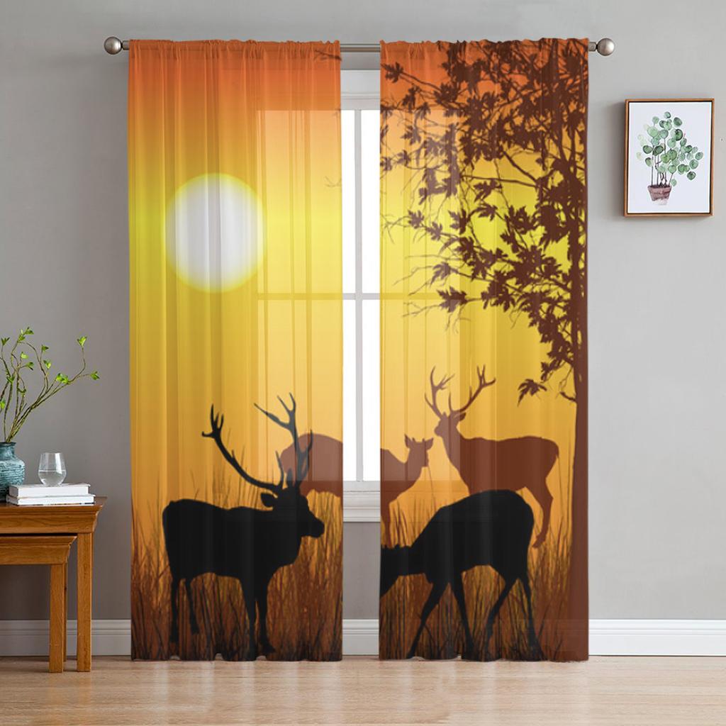 Шторы из прозрачного тюля с дикими оленями в лесу для гостиной, прозрачные тюлевые оконные шторы для спальни, кухни, домашнего декора, вуалевые шторы