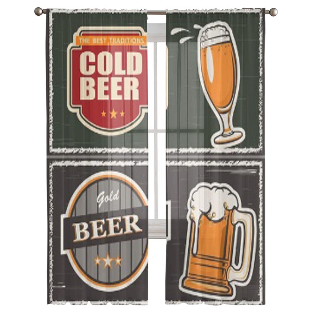 Стакан пива Эмблема Прозрачные шторы для гостиной Прозрачный тюль Оконные украшения Спальня Кухня Домашний декор Вуаль Шторы