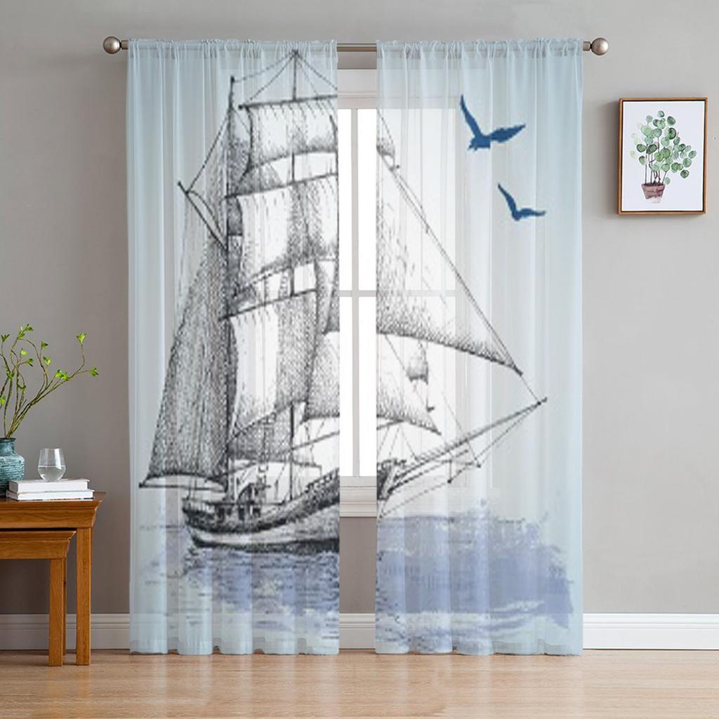 Рисунок лодки Тюль Прозрачные шторы для гостиной Украшения Шторы для комнаты Спальня Кухня Вуаль Шторы из органзы