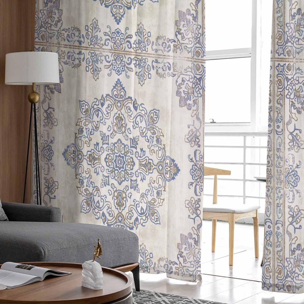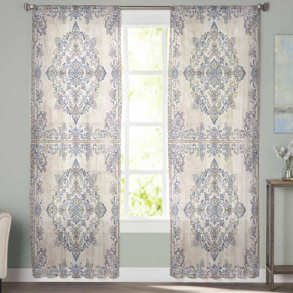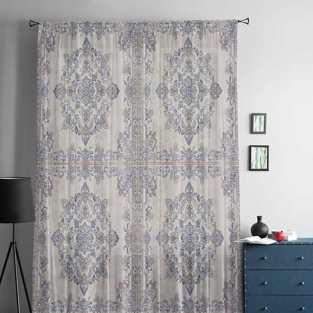 Ретро персидский узор цветочный ближневосточный стиль оконные тюлевые шторы для гостиной отеля Роскошные украшения прозрачные шторы