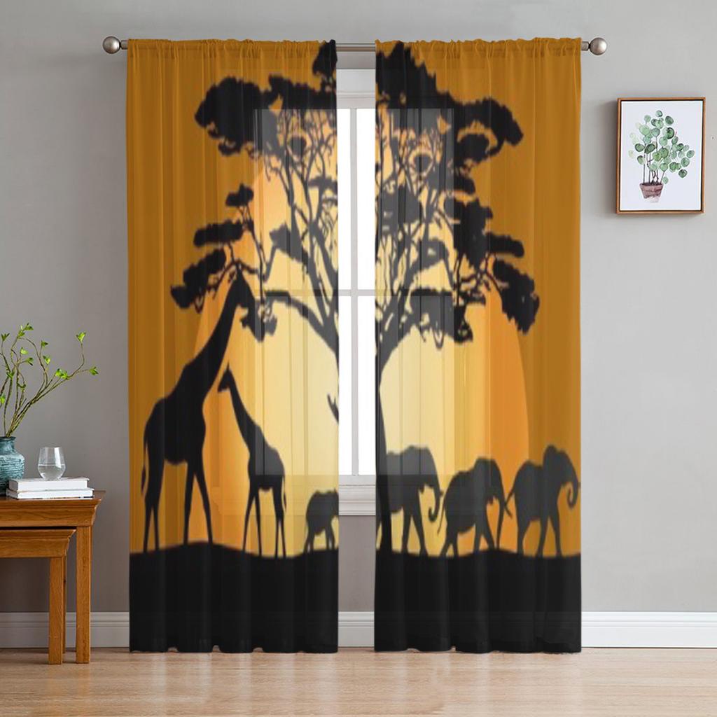 Пейзажные Животные Слон Жираф Дерево Шифон Прозрачные Шторы для Гостиной Спальни Оконные Шторы Вуаль Тюль Кортины
