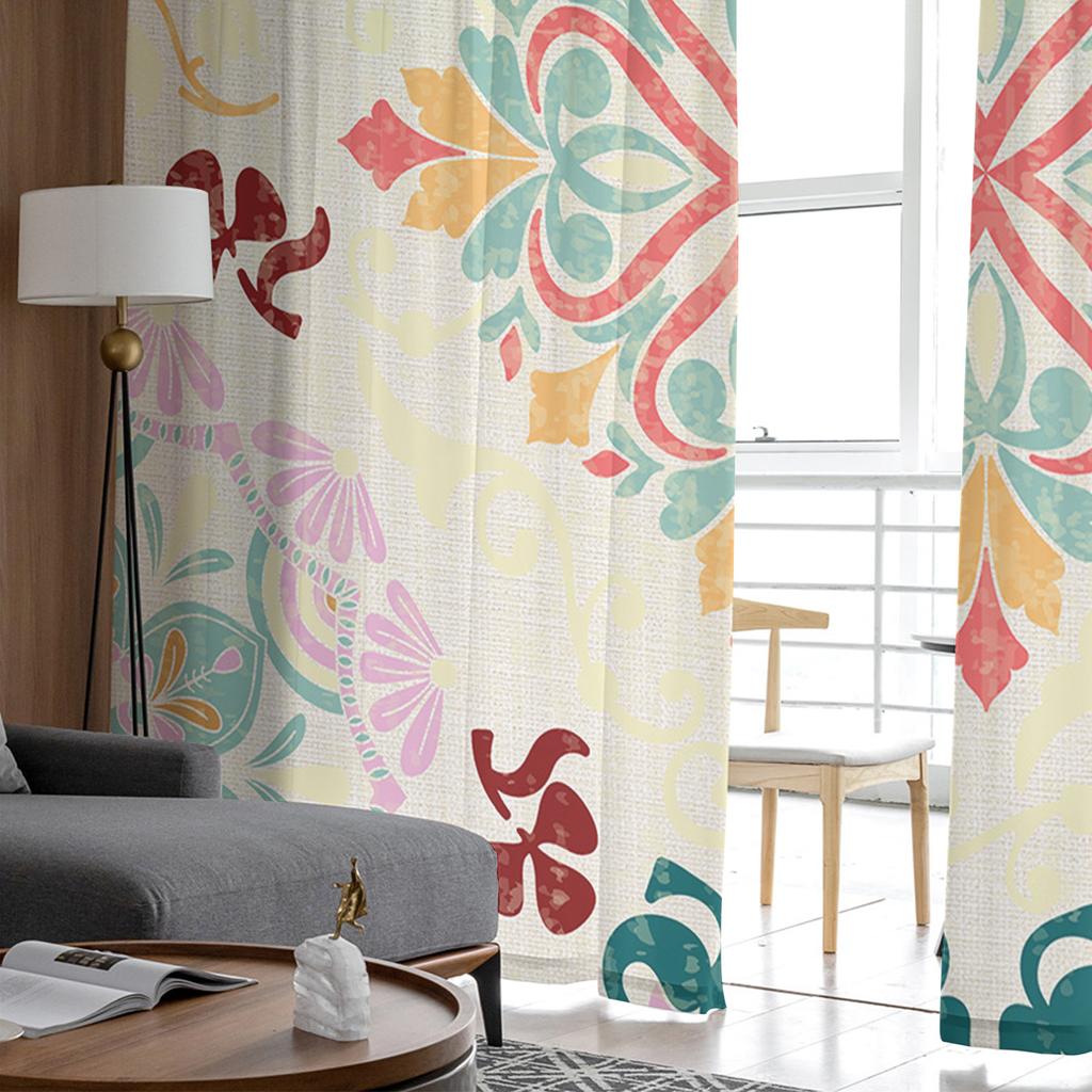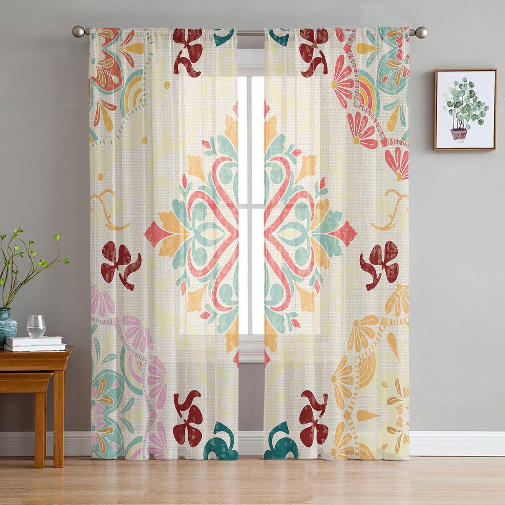 Türkiye узор Персидская винтажная геометрическая прозрачная оконная занавеска, тюлевые шторы для гостиной, спальни, домашний декор, вуаль, шторы