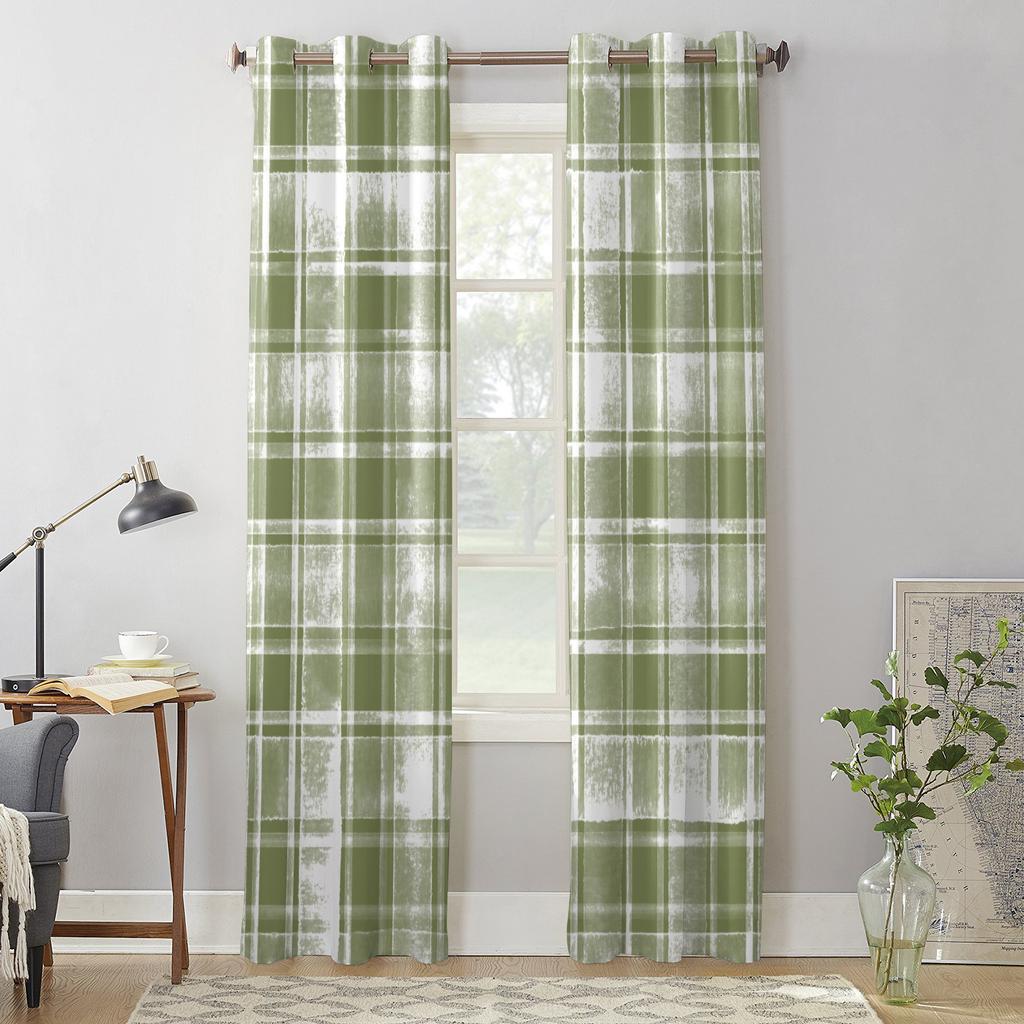 Шалфейно-зеленые акварельные клетчатые оконные шторы для гостиной, спальни, современные кухонные жалюзи, шторы