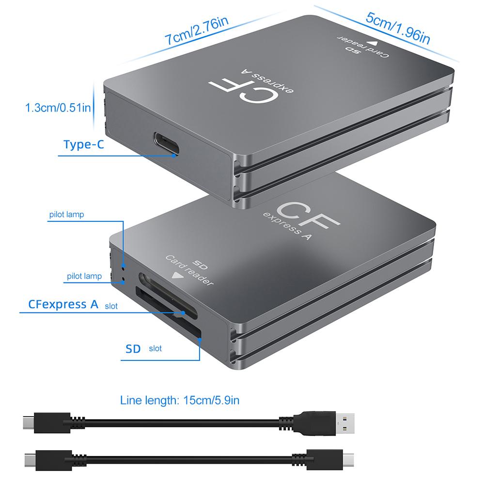 2 in 1 CFexpress Type A SD Card Reader USB 3.2 10Gbps with USB C To USB C/A Cable Support Android/Windows/Mac OS for SLR
