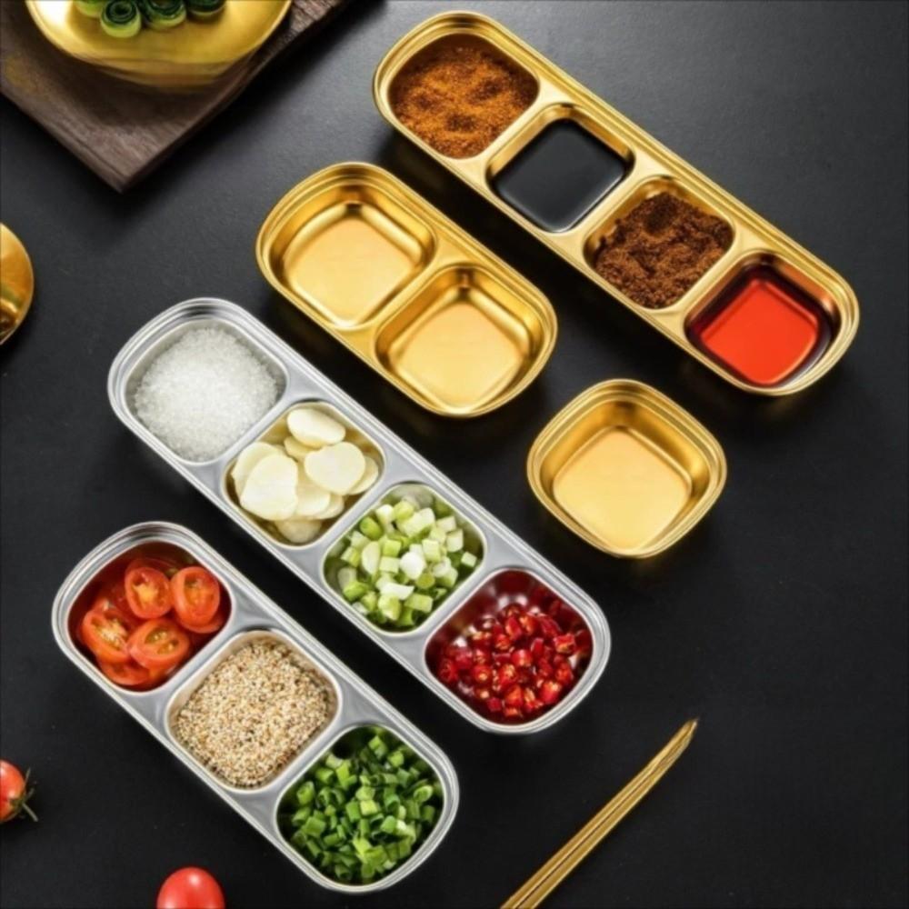 1/2/3/4 Grids Condiment Tray Seasoning Container Divided Sauce Tray BBQ Sauce Plate Kitchen